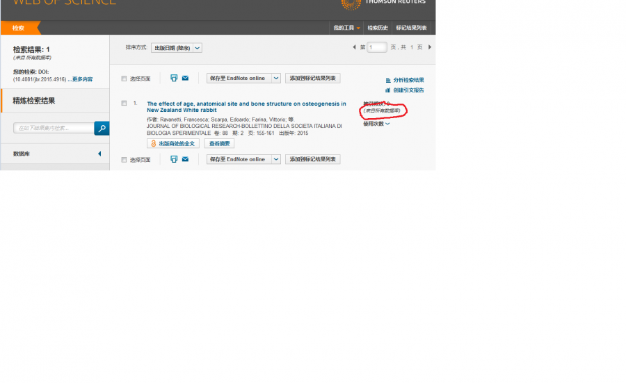 我验证了一下,因为我是生物领域的,所以我就随便检索了一个意大利杂志的文章。The Journal of Biological Research – Bollettino della Società Italiana di Biologia Sperimentale。 比如 Vol 88, No 2 (2015) 第一篇文章doi号是10.4081/jbr.2015.4916,检索后 入藏号是WOS:000367450500001 需要说明的是,我通过ISI检索时,数据库选择的是 所有数据库。对于一些单位只认检索结果的,或许可以钻空子。
