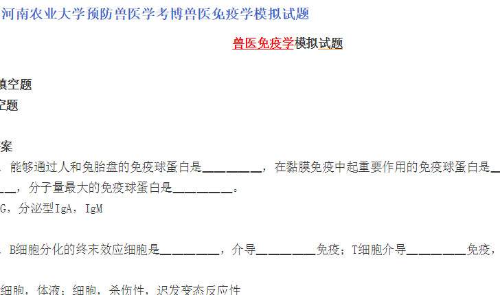 河南农业大学预防兽医学考博兽医免疫学模拟试题 建大和论述题