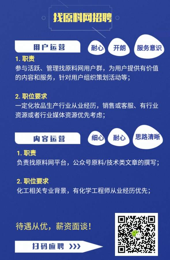 找原料网(www.zhaoyl.com)是广州慧品电子商务有限公司旗下的一家专业的日化原料服务B2B电商平台,用户覆盖全球所有国家地区。找原料网集原料交易、技术服务、信息分享于一身;精选国内外优质供应商,聚合行业内优秀工程师;引进第三方专业技术服务、物流服务和信用担保体系;大力促进行业内的深度交流与合作 ;致力于打造全球最专业的日化原料服务平台,实现电子商务一体化,解决化妆品原料供应信息不畅、采购成本居高不下、质量无法保证、技术受阻等问题。
