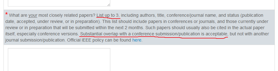 标红的部分表示,投稿的期刊可以是基于之前自己发表的会议的内容的