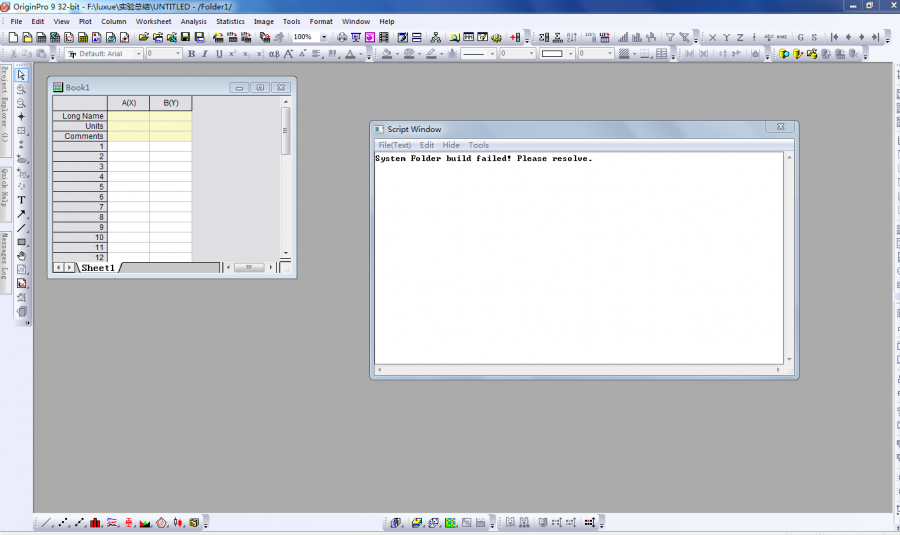 前几天刚换了个系统,从XP换成了win7,换之前还好好的,可以用,换完之后,今天用了一下,可以打开,但是多了个窗口,显示Script Window,然后上面直接显示“系统文件夹建立失败,请解决”。如图2所示。
