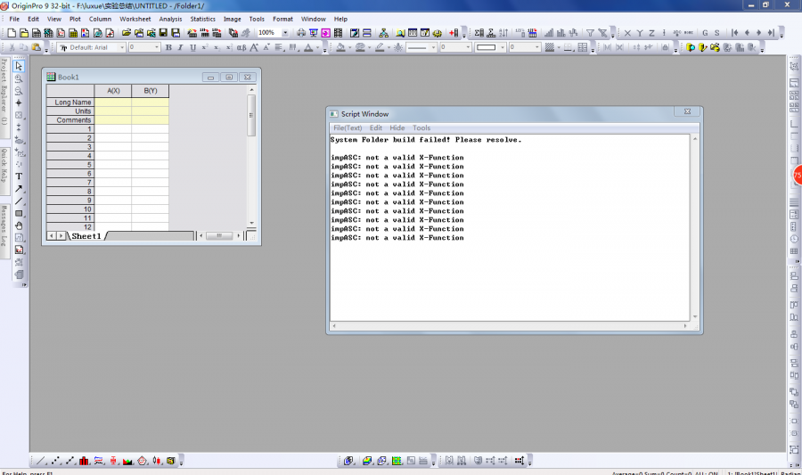 尝试导入数据作图试试,不论选择多组导入还是导入一组,窗口显示“impASC: not a valid X-Function”,数据导不进去,如图1所示。还请大神指教啊。