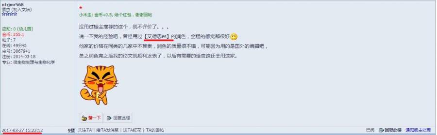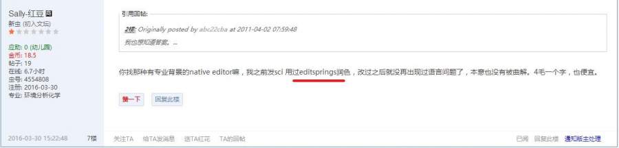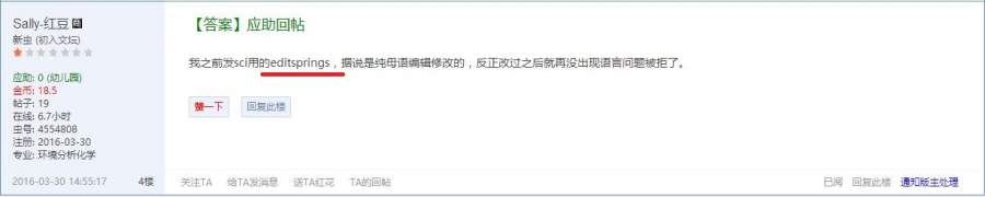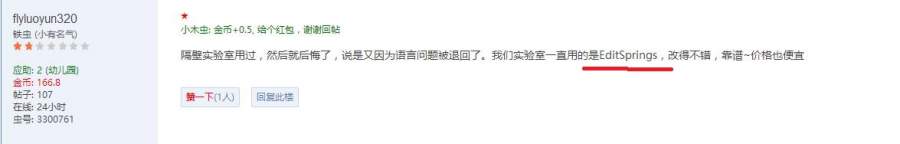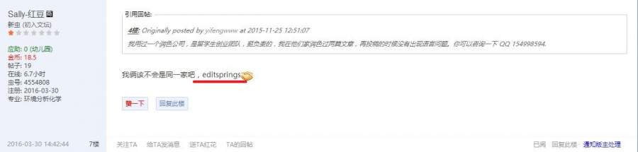 无良商家武汉editsprings保持每天发几十条欺骗广告的速度 editsprings在小木虫已发布几百甚至千余条欺骗广告 大家要小心谨慎