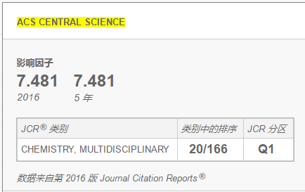 根据WoS 12月30日的数据,ACS Centr. Sci.即时IF(指明年出的JCR2017)为9.85。预计最终的IF在11-11.5的区间。
