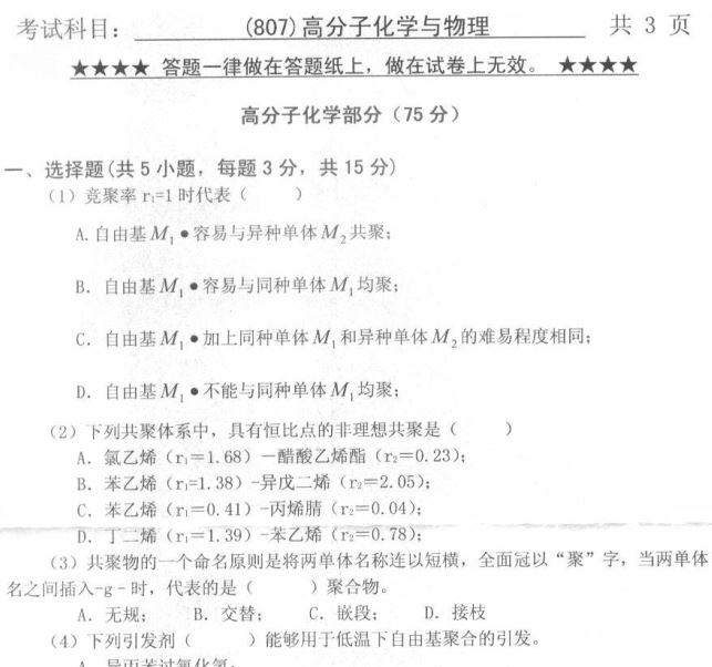 807高分子化学与物理