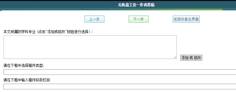 本人想投无机盐工业,但是这里点击添加或修改没有反应,下面的投稿类型下拉菜单也没有显示,这怎么回事啊????急急急!