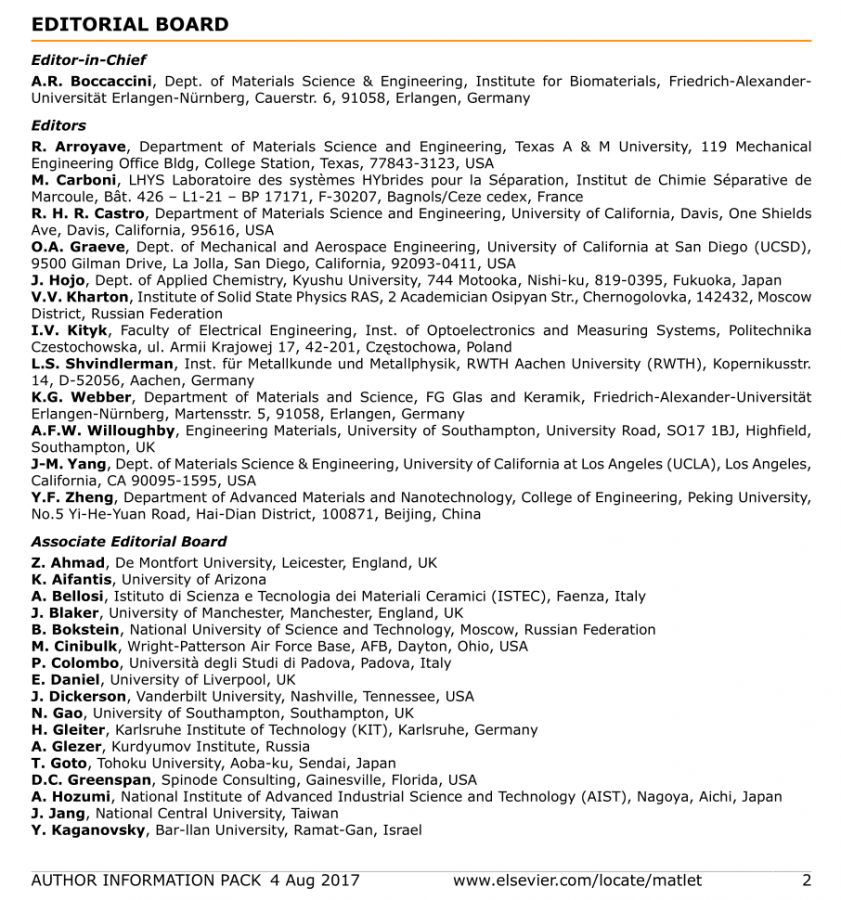 如题,2篇文章目前状态卡住了,估计审稿人或者编辑度假去了,刚完成了第3篇,准备投个materials letters,麻烦有经验的虫友推荐个好点的编辑(所有编辑见图),谢谢!不需要等很长时间。。方向:纳米材料,金属复合材料,材料综合,材料科学。