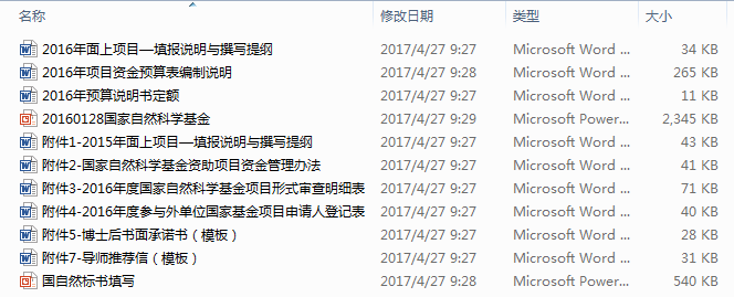 全部文件 20160128国家自然科学基金 国自然标书填写 2016年面上项目—填报说明与撰写提纲 2016年项目资金预算表编制说明 推荐信