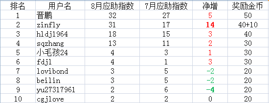 食品版的各位虫友们: 经过一个月的努力,食品版2017年7月应助前十如下表: 排名规则:如果本月应助数量相同,则参考上月应助数量,上月应助数量多者排名靠前。若上月应助数量依然相同,则参考上上月份应助数量,以此类推。 另外,特设一个最快进步奖,即应助数量较上月有明显提升的,可获得10金币的奖励。 大家留言领奖! 返回小木虫查看更多
