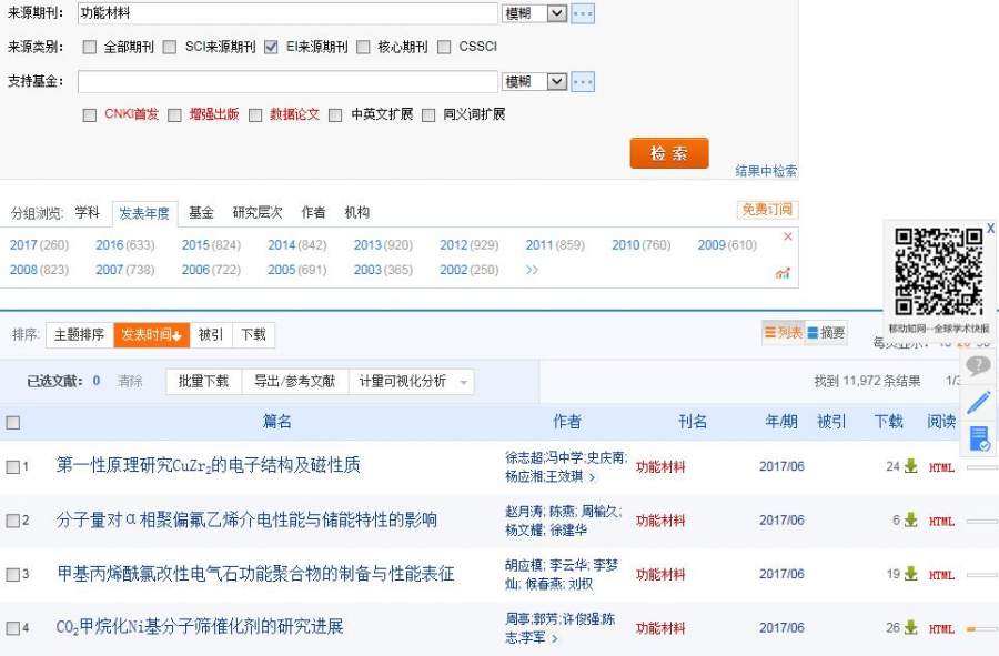 知网上筛选期刊类别选择EI