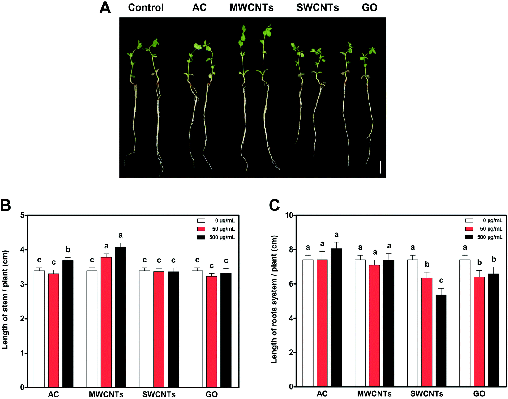 Effects of different CNMs on the growth of legume plants