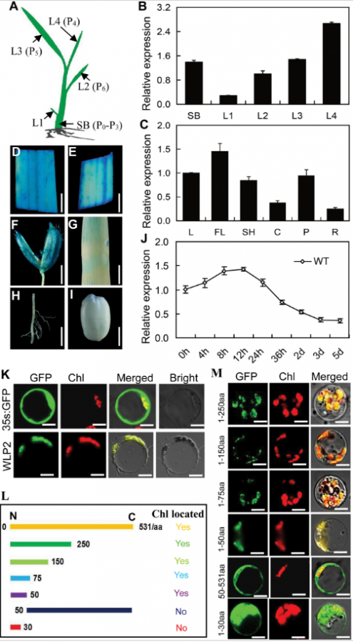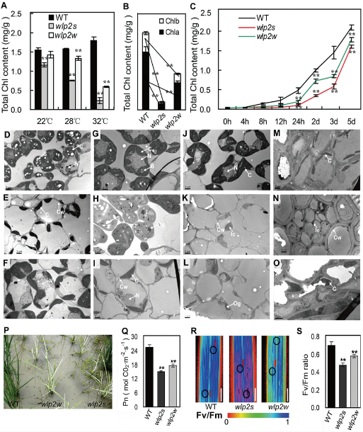 本研究基于其两个等位基因白叶与穗突变体wlp2s和wlp2w,鉴定了一种新型PEP相关蛋白(PAP)WLP2。这两个突变体在高温下均可使水稻白化致死,而且叶绿素积累减少、叶绿体超微结构异常以及光合作用减弱等。