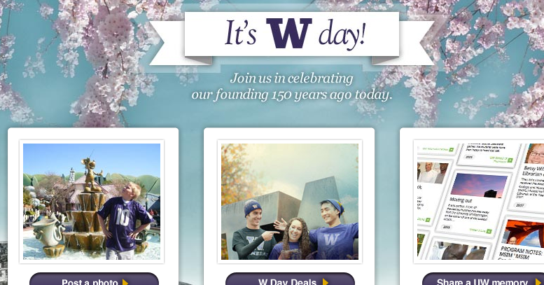 我们UW, 全称University of Washington- Seattle, 有全美第一的护理和基础医学和临床心理学。 按照美国太平洋时间算,明天就是我们的校庆日。学校的首页也改了,发几个截图和学校的照片(从搞摄影的同学那拿的)。 学校首页也改了装扮。 奥巴马来我们学校 [ 来自科研家族 海外留学 ] 返回小木虫查看更多