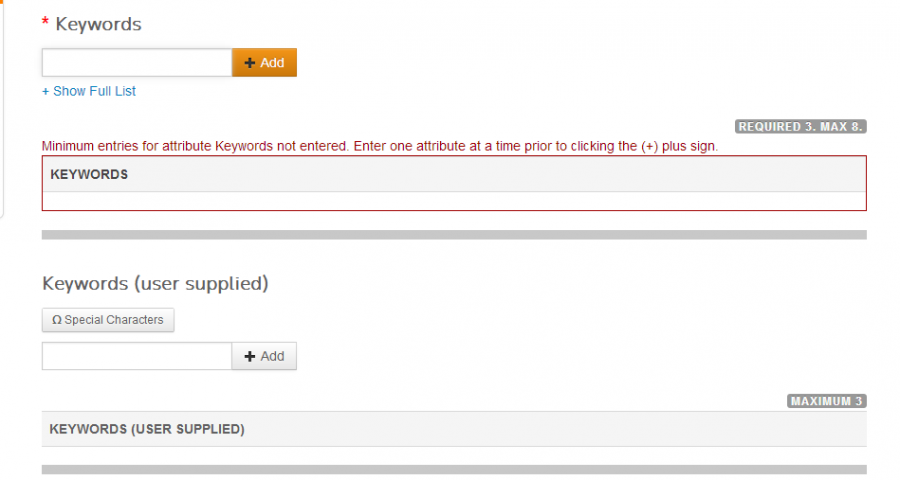 关键字在那个左上角那个list里面选就好,自己填的虽然对不上,但是系统认可也可以。