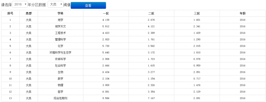 见图片(点击可放大)。对于一个刊物,直接计算2014-2016三年平均IF,再和对应大类的阈值作比较,即可知道大类分区情况。 2016大类分区阈值.png 返回小木虫查看更多