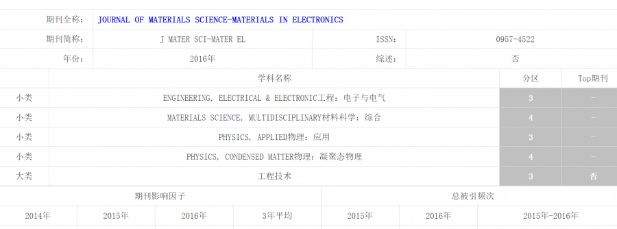 Journal of materials science-materials in electronics谢谢,方便的话可以截个图吗?看下小类分区