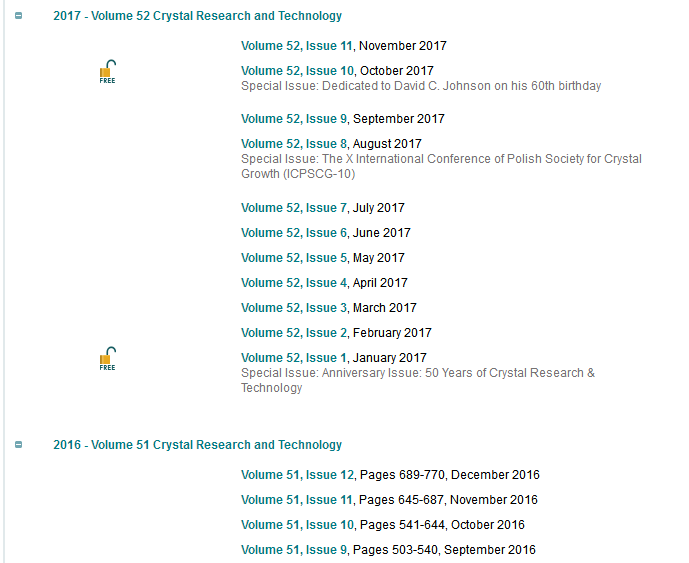 中了一篇Crystal Research and Technology的文章,发表后发现没有页码,去官网查好像2017年的文章都没有页码,2016年的就有,有没有虫友知道什么情况?非常感谢! CRAT.png 返回小木虫查看更多