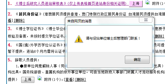 但是博后网上提交申请时,出现如下图中窗口,问了公司人事,