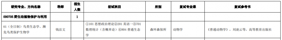 其中野生动植物保护与利用专业需要有动物学背景,分数过国家线。