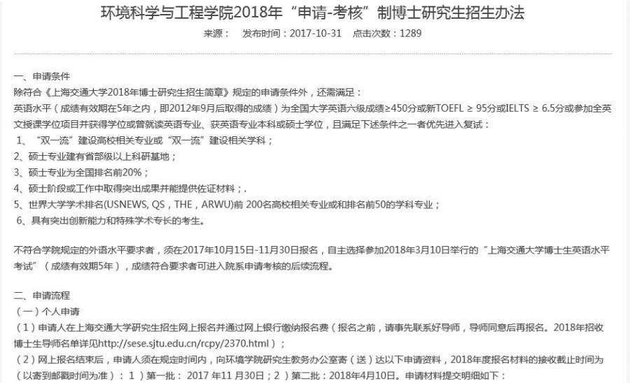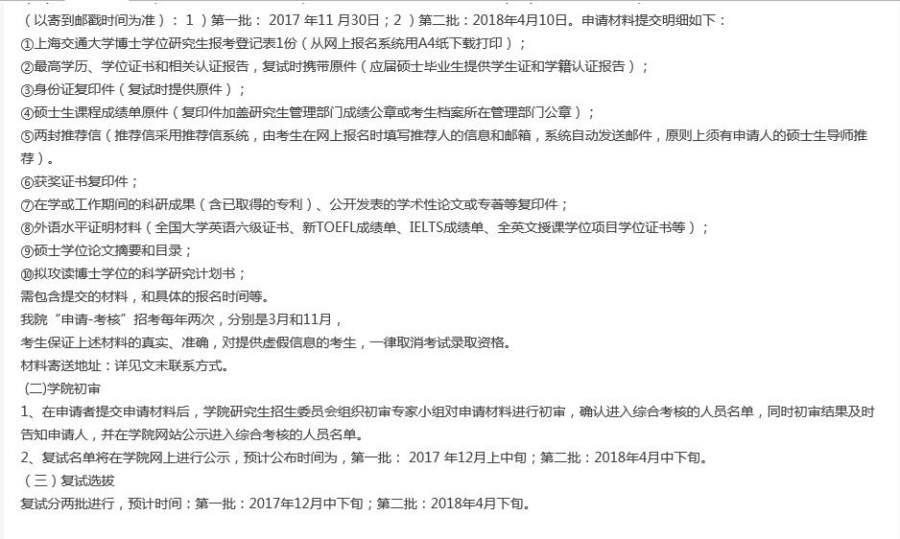 1. 除符合《上海交通大学2018年博士研究生招生简章》规定的申请条件。