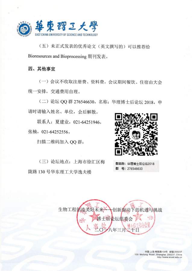 =====2018全国博士后论坛征文通知(生物工程创造美好未来)=====