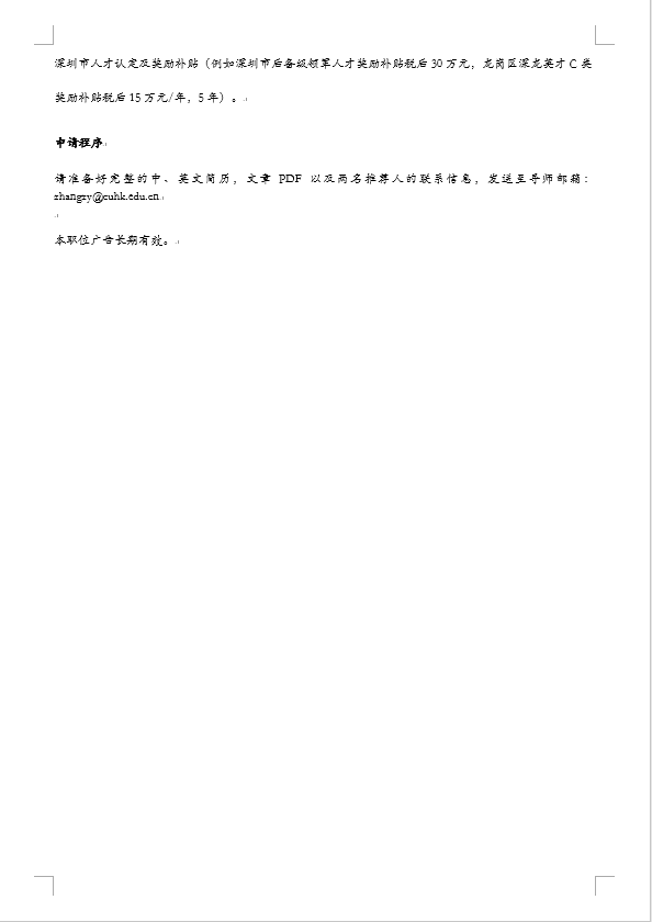 本广告长期有效,有意者请联系导师,邮箱:zhangzy@cuhk.edu.cn