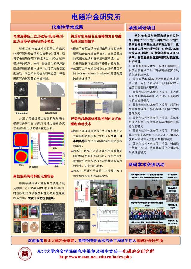 [长期有效]东北大学冶金学院电磁冶金研究所欢迎推免生和广大考生报考