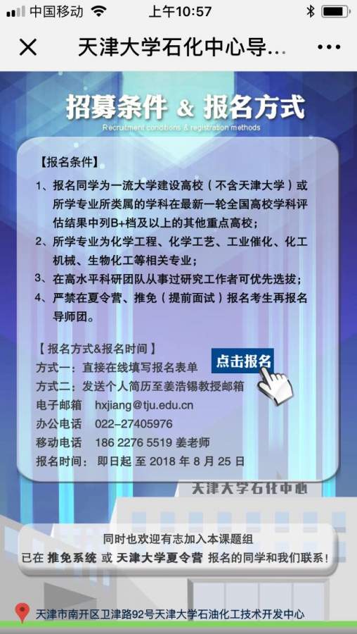 天津大学-石化中心导师团招收化学工程、化学工艺、工业催化、生物化工等方向研究生 天津大学-石化中心研究方向及导师团介绍请用微信扫描图1二维码观看,报名请参考图2 石化中心微信.jpg 招生条件.jpg 返回小木虫查看更多
