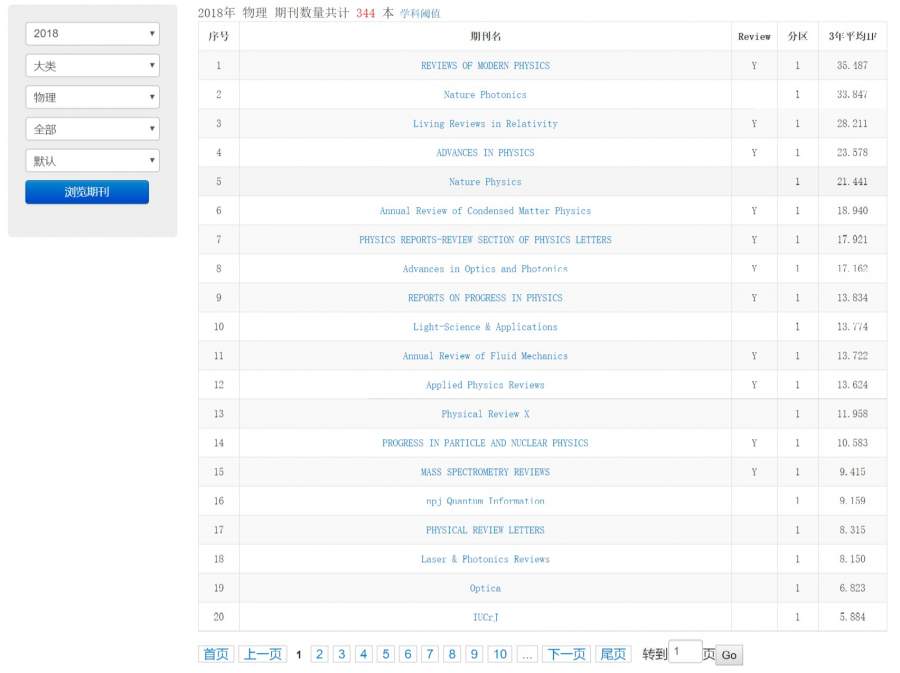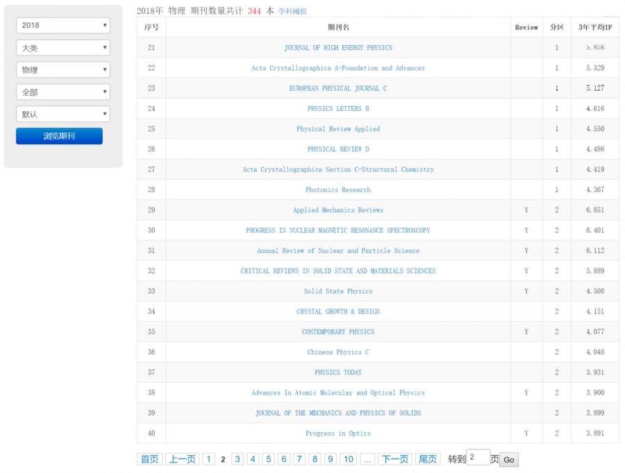 求大神把2018年中科院jcr分区物理大类一区第一页截图一张?全网页截图