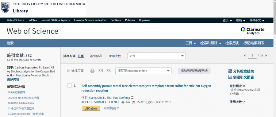 最近在统计自己发表的文章被引用的性息,但登录学校的图书馆网页后,对查询的文章引用信息不是很了解,下面举一篇文章为例: