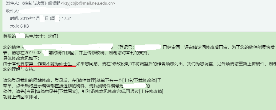 我第一篇文章也是控制与决策,也是写了导师一作才中的,很多中文Ei都是这样的,但是自动化学报和控制理论与应用就可以硕士一作,楼主可以试试