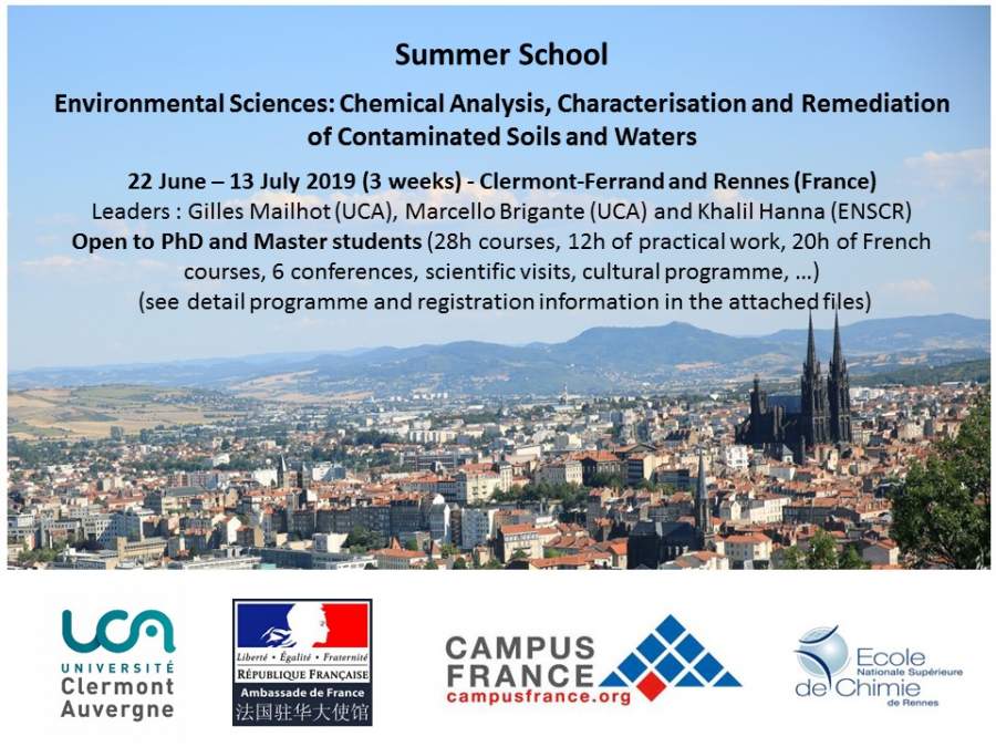 法国雷恩国家高等化学院 khalil hanna教授,克莱蒙奥弗涅大学 gilles mailhot教授和marcello brigante教授联合招收2019年环境化学方向的硕士、博士暑期生。