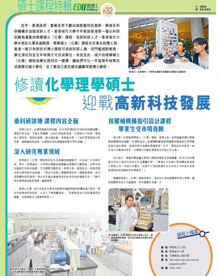 欢迎申请修读香港城市大学化学系理学硕士,迎战高新科技发展