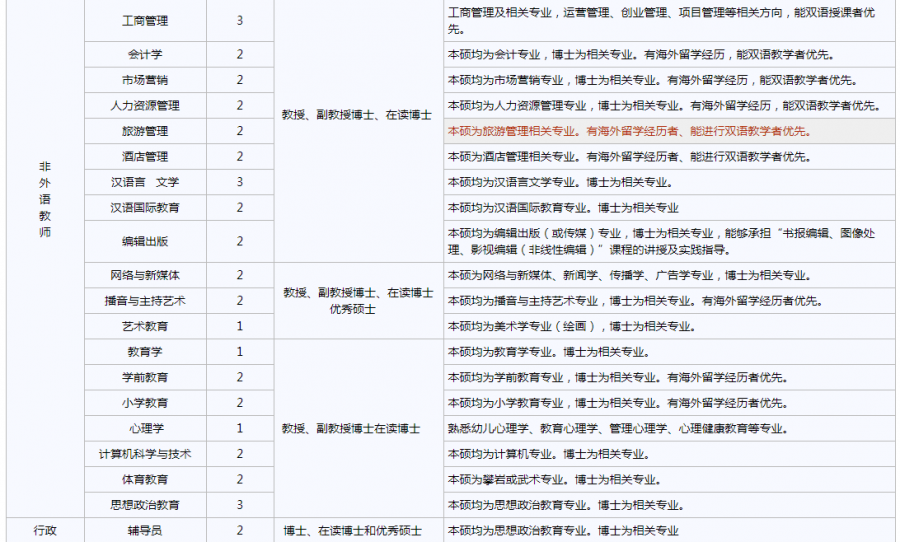 3、小语种等个别稀缺专业的优秀硕士来校工作: