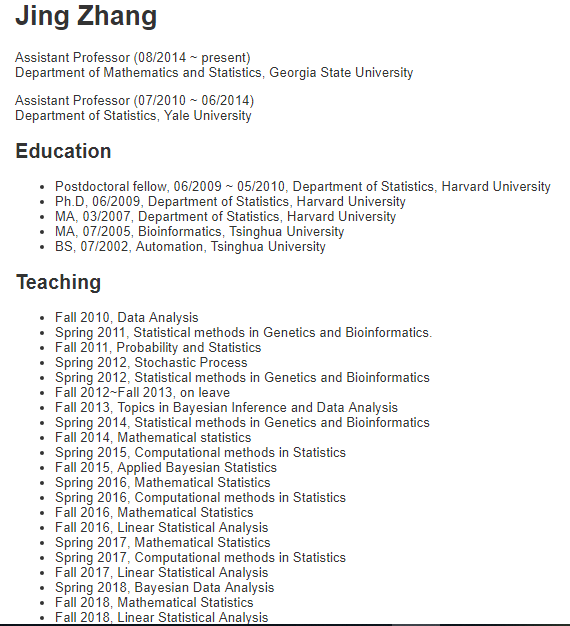 Postdoctoral fellow, 06/2009 ~ 05/2010, Department of Statistics, Harvard University