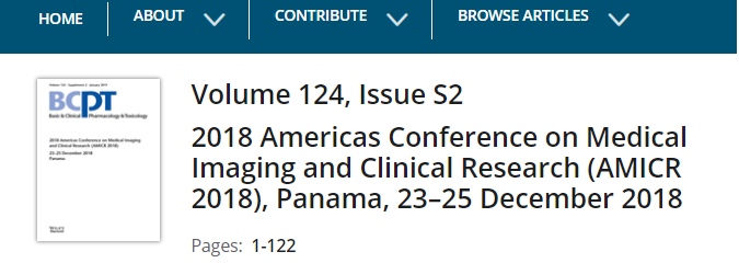 2018 americas conference on medical imaging and clinical research (amicr 2018) has been successfully held on december 23-25, 2018,panama city, panama. amicr 2018 paper abstract has been published by a sci journal basic & clinical pharmacology & toxicology (issn: 1742-7835, e-issn:1742-7843) volume 124, issue s2, which has been indexed by web of science science citation index (sci) and web of science science citation index expanded (scie) within 1 month after conference date.the impact factor of this sci journal is 2.659.