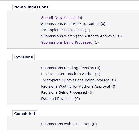 我在Journal of Alloys and Compounds投稿时,提交了我的论文,最后停留在了图1的状态(Submissions Being Processed for Author ***),请问这个是什么意思?要等多久才会进入下一步,或者才有paper ID? 系统显示整个流程如图2所示。