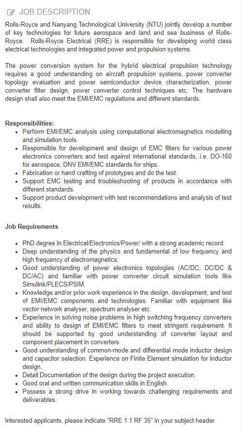 新加坡南洋理工大学-劳斯莱斯联合实验室博后招聘,工作内容和要求详见下图或链接:https://www.jobstreet.com.sg/en/job/7392687/sources/1