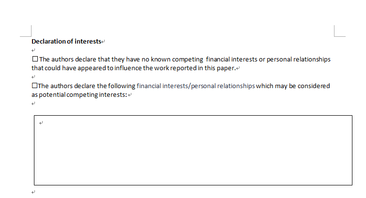 2.还有提示上传conflict of interest, 提示如图1,关于这个的说明如图2,下载的word文件如图3,我应该怎么填写呢?