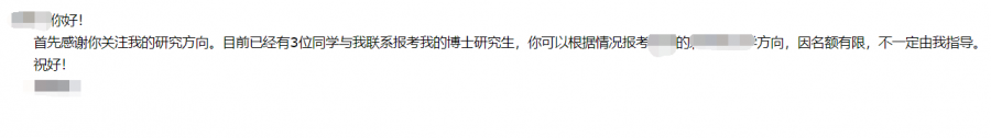 针对回复来说,除了第二个导师的回复非常肯定之外,其它两位都表示已经有人报了。言外之意可能另外两个老师已经有一些目标了。