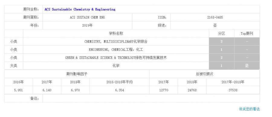 ACS Sustainable Chemistry & Engineering目前是哪一区?