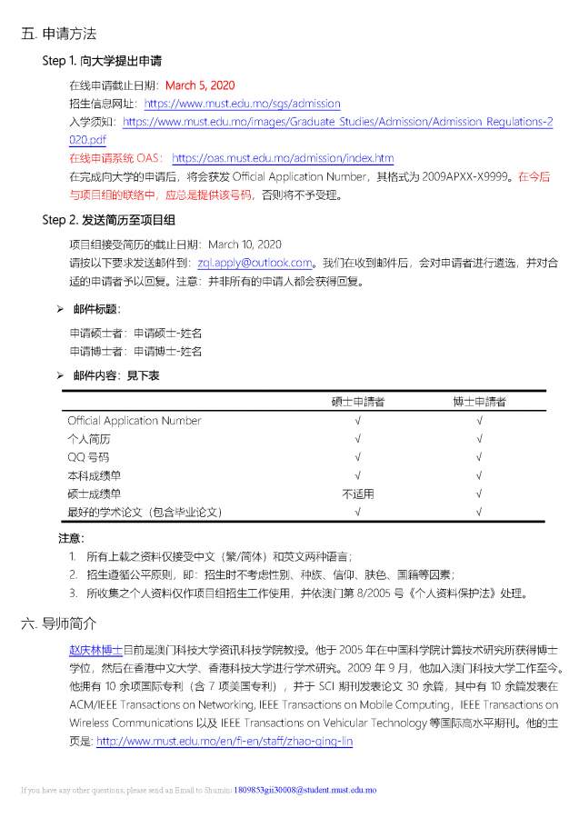 NOTE: March 5 is the application deadline of our university's Master/PhD program. If you have submitted your application successfully, please always attach your application NO. for further communications.