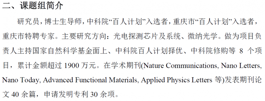 重庆邮电大学+国科大重庆学院 中科院百人计划团队 接收光学工程专业硕士调剂生