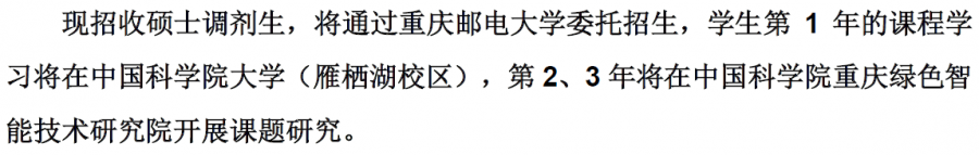 第1年的课程学习将在中国科学院大学(雁栖湖校区),第2、3年将在中国科学院重庆绿色智能技术研究院开展课题研究。