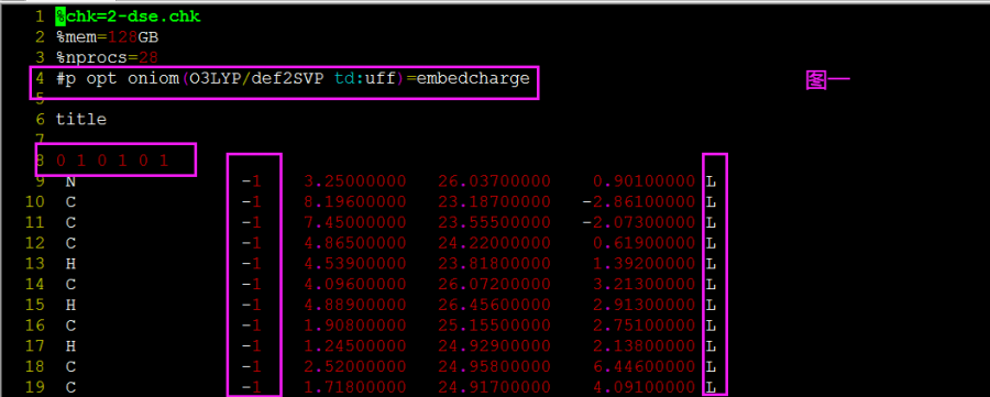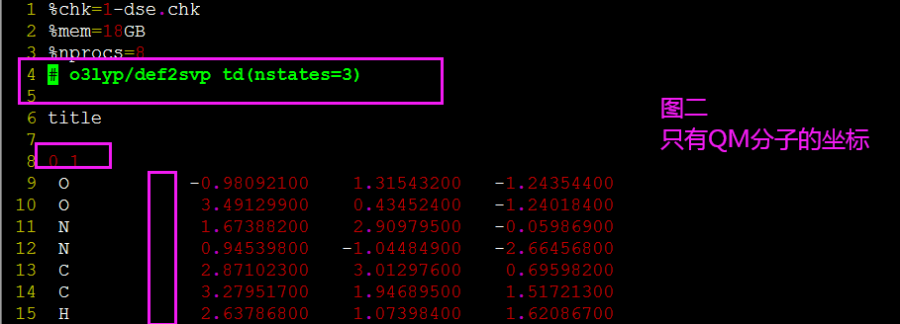 借一下楼,老师您好,我想得到得到激发态的HOMO-LUMO图和数据,我用oniom得到激发态的结果后在怎么做单点计算,我之前是把qm分子坐标拿出来做,但明显不对,这样就无法考虑分子间的作用力。图一是我做的激发态的结果,图二是之前单独拿出qm分子算的单点计算,明显不对。要怎样写命令和输入文件才可以,我刚接触计算不久,还请老师多多指点,感谢!
