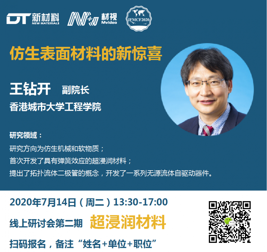 14:40-15:10 仿生表面材料的惊喜 王钻开,香港城市大学工程学院副院长