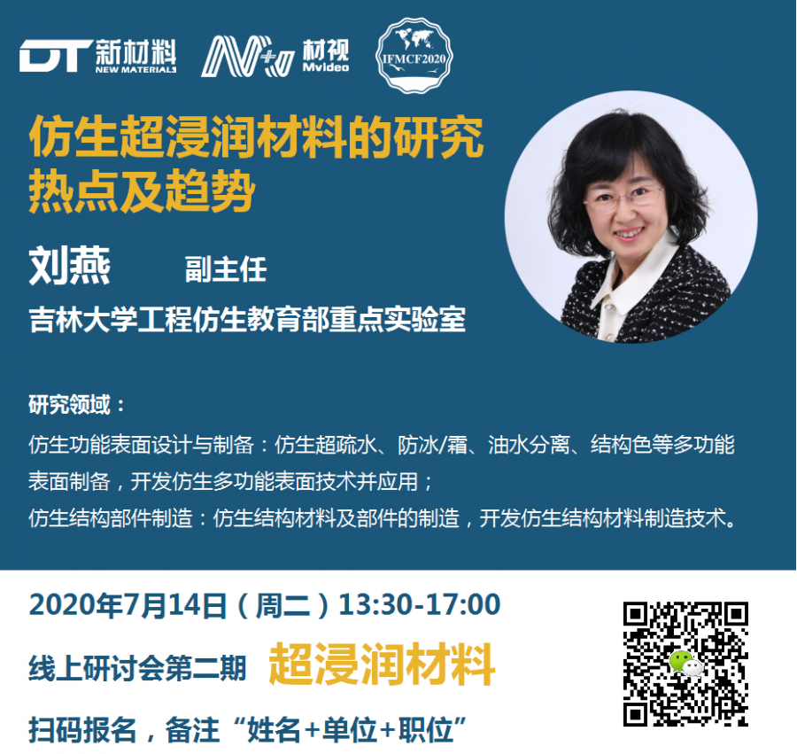 14:10-14:40 仿生超浸润材料的研究热点及趋势 刘燕,吉林大学工程仿生教育部重点实验室副主任