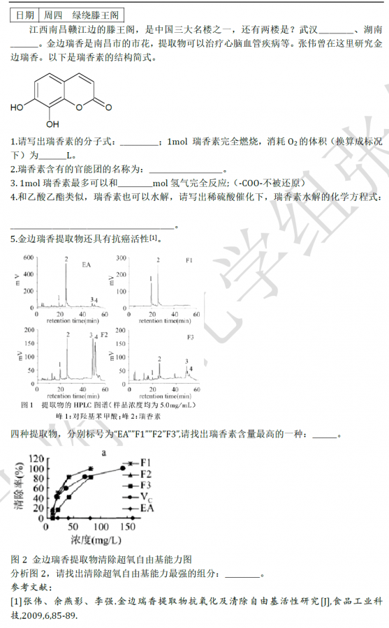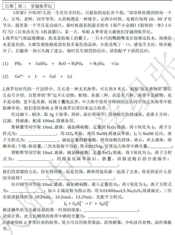 需要这份练习的,可以关注我的两个微信公众号“中大附中化学组”和“化学张伟”。