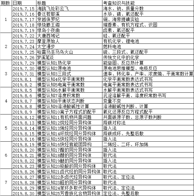 高一化学体现核心素养的暑假作业25篇及25个微课