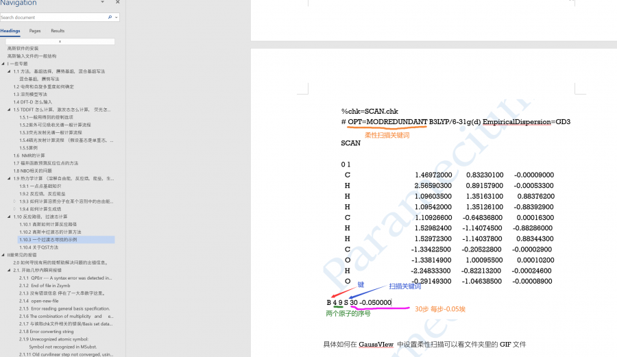 同时这个帖子的附件6就是一个如何用GaussView设置柔性扫描的动图。